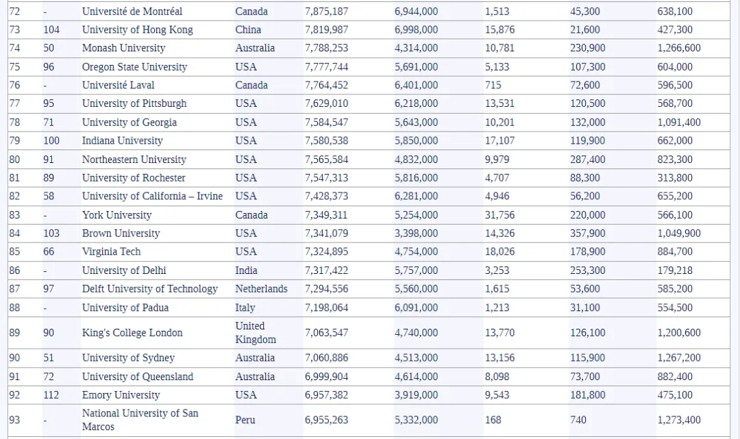 总部设在美国DC华盛顿州的全球大学知名度排名,对于全球1000所高校进行了分析。