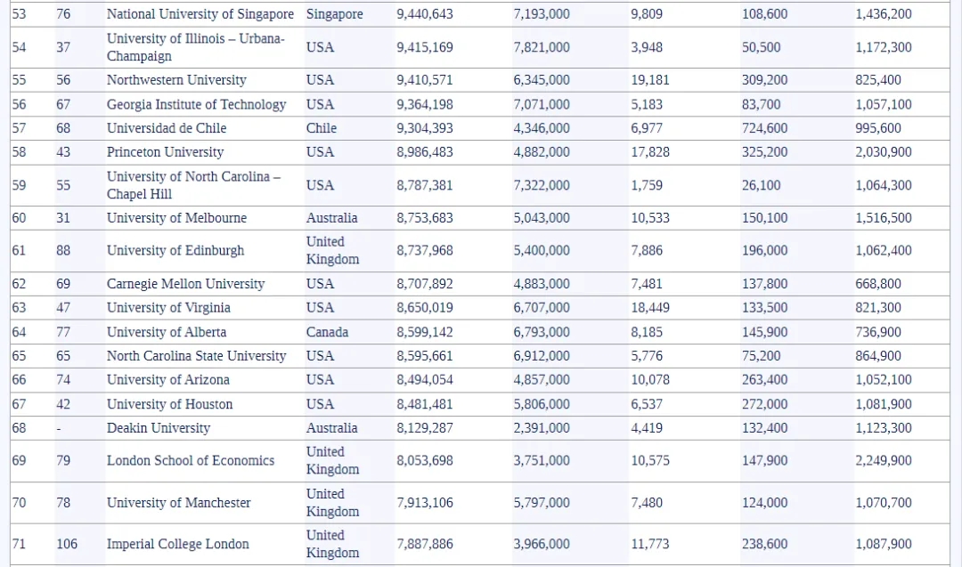 新南威尔士杀疯了:从去年88名猛涨至23名,力压墨尔本大学(31名)成澳洲第一。莫纳什(50)、悉尼大学(51)、昆士兰(75)均进前百,5所院校上榜数追平英国。