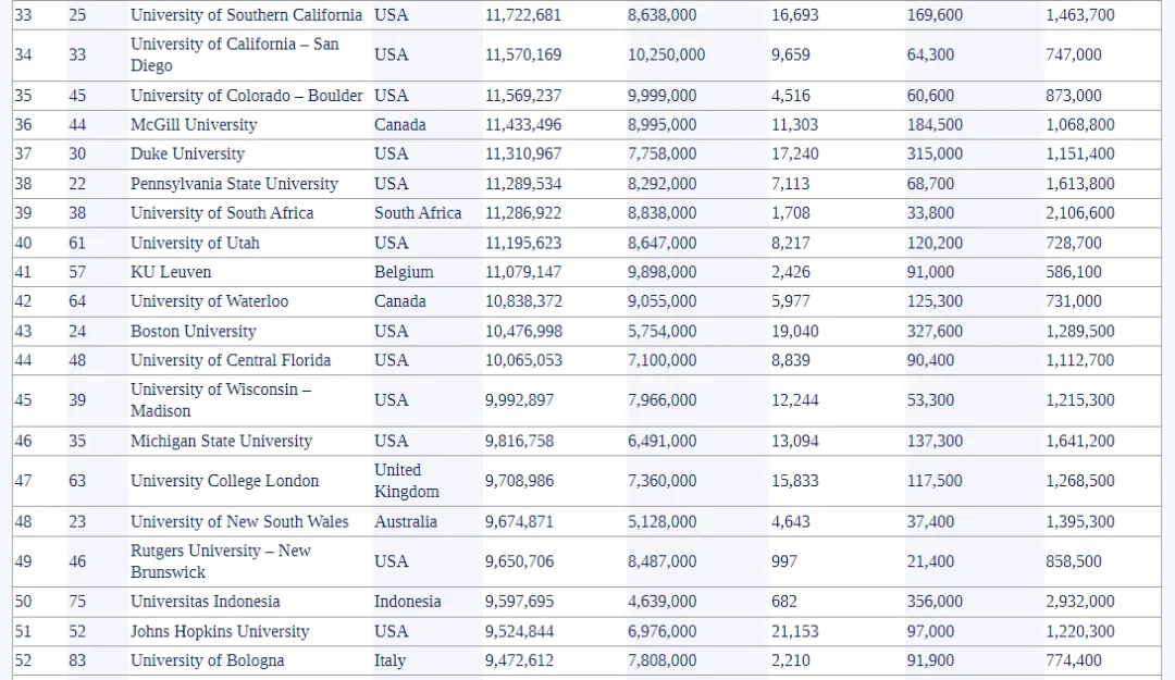 这一数字由学校官方的Instagram、脸书、Twitter (X)和LinkedIn渠道的粉丝总数组成。注意:抖音没有包括在内,因为许多大学在该平台上缺乏存在,因此无法进行一致的比较。