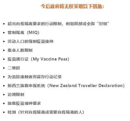 目前,新西兰对入境旅客保留的限制(目前执行,或未来可能执行):