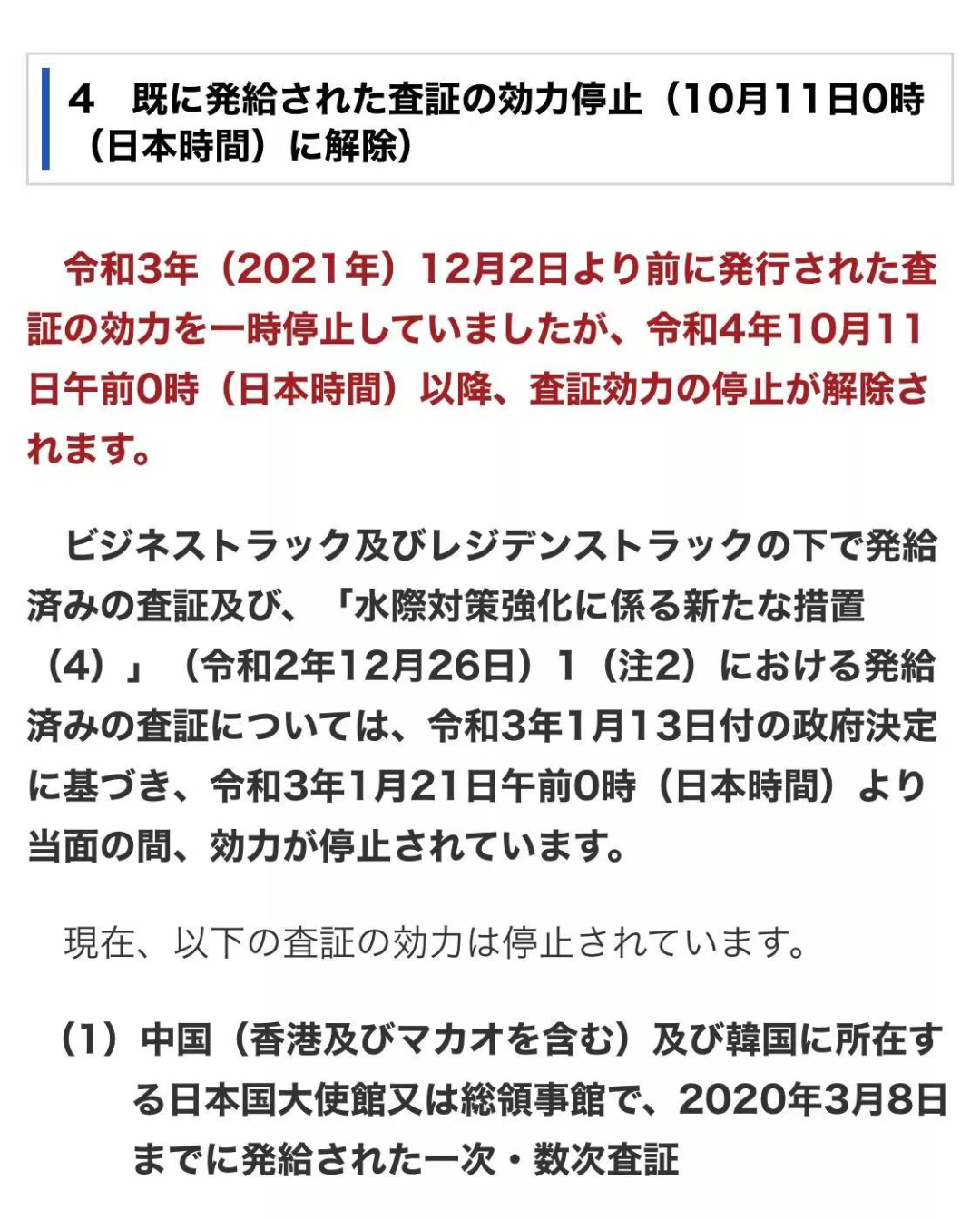 ● 日本签证只要还没过期,将在 10 月 11 日后恢复有效。大陆居民持有的日本签证,若 10 月 11 日之后仍有效,将可以入境。(看看手上的签证是否还在有效期内哦)